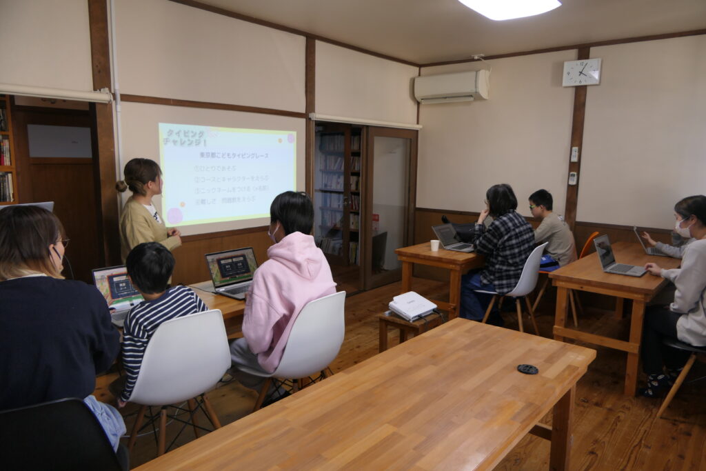 子どもたちと保護者の方でタイピング対決を行い、教室は大盛り上がり。