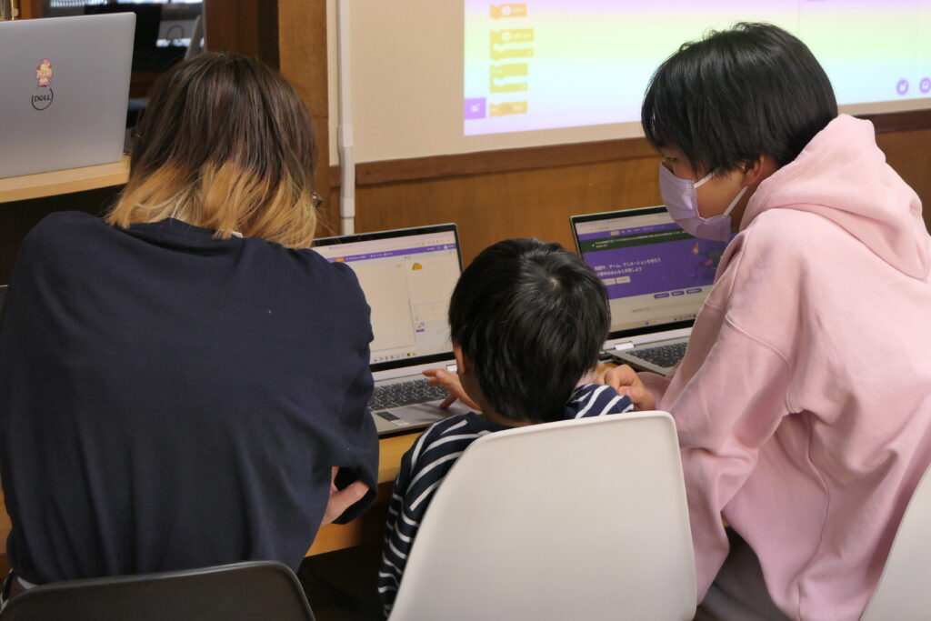 今回は保護者の方にも一緒にパソコンを操作していただき、子どもたちと一緒にゲーム制作に挑戦しました。